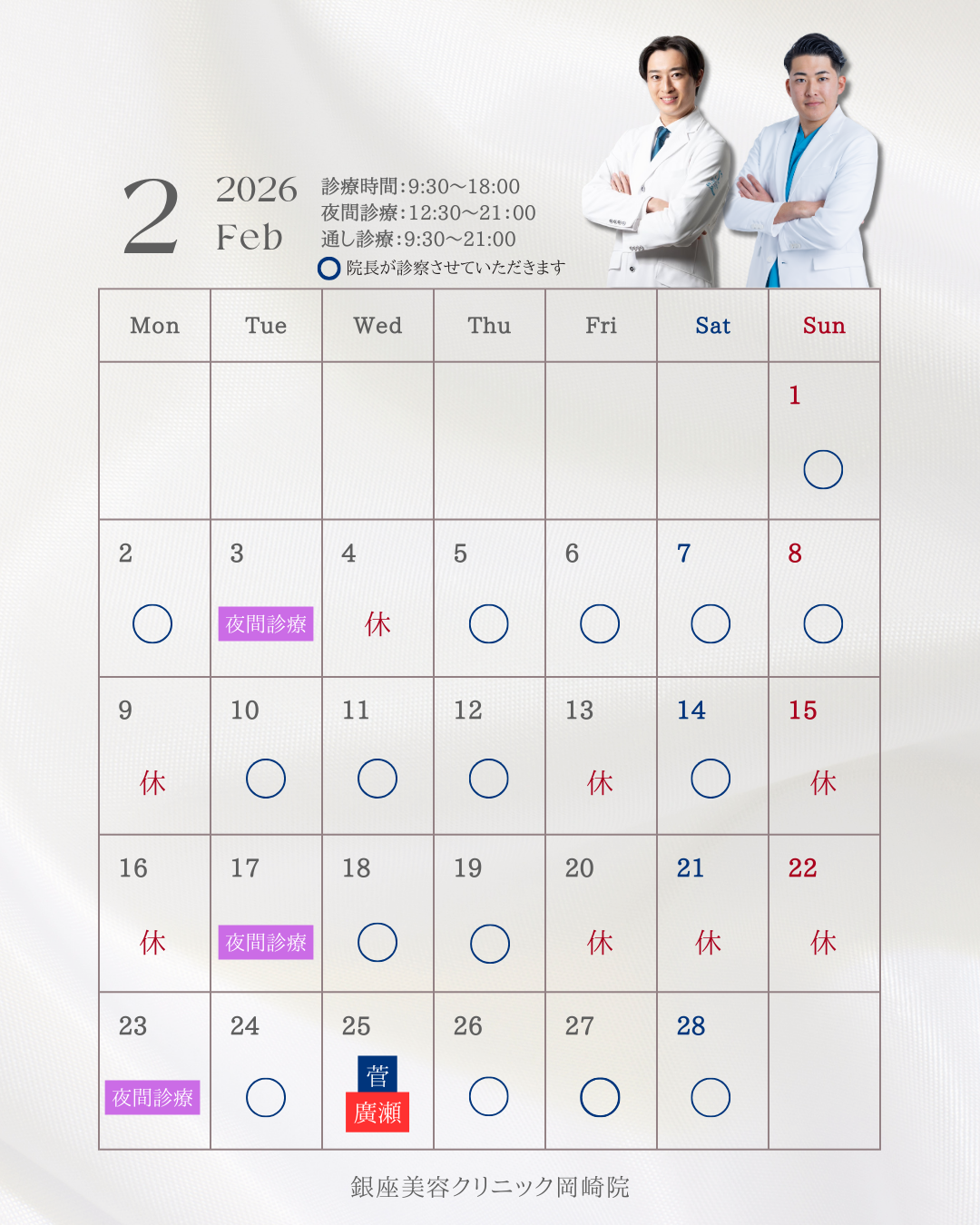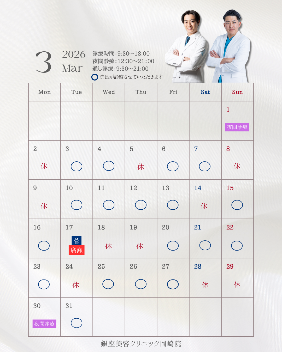 東岡崎駅徒歩30秒にある当院は、医師による丁寧なカウンセリングを通じて、しみ・毛穴・ニキビ跡などのお肌のお悩みに、駅徒歩1分で通える医療脱毛や最新肌育治療をご提案します。